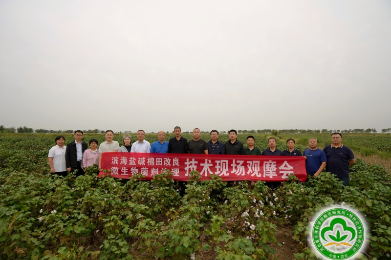 9月21日,棉花所在沧州市海兴县组织召开了“滨海盐碱棉田改良与微生物菌剂治理技术现场观摩会”。会议邀请北京林业大学李召虎教授,全国农业技术推广服务中心陈常兵研究员,中国农业大学田晓莉教授、李芳军副教授,北京市农林科学院吴慧玲副研究员,河北农业大学农学院刘连涛教授、张永江教授等专家参会,河北省农林科学院张强副院长,河北省农林科学院植物保护研究所马平研究员,河北省农林科学院棉花研究所张建宏所长、祁虹副所长等20余人参加会议。